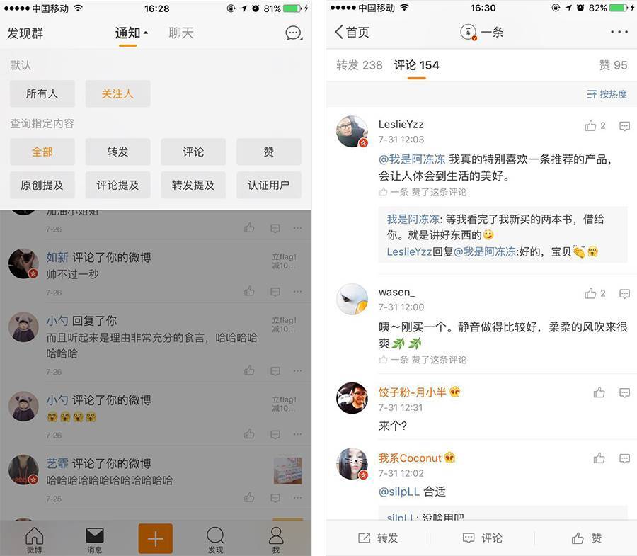 此外,內(nèi)容消費(fèi)型用戶,在社區(qū)的持續(xù)使用過(guò)程中也會(huì)產(chǎn)生被激勵(lì)的訴求,通過(guò)諸如評(píng)論等較低門檻的內(nèi)容生產(chǎn)機(jī)制,可以為消費(fèi)型用戶創(chuàng)造被認(rèn)同激勵(lì)和互相交流的契機(jī)。如,微博利用評(píng)論點(diǎn)贊功能刺激內(nèi)容消費(fèi)者表達(dá)觀點(diǎn),并利用評(píng)論點(diǎn)贊和回復(fù)的總和熱度排序露出優(yōu)質(zhì)用戶。